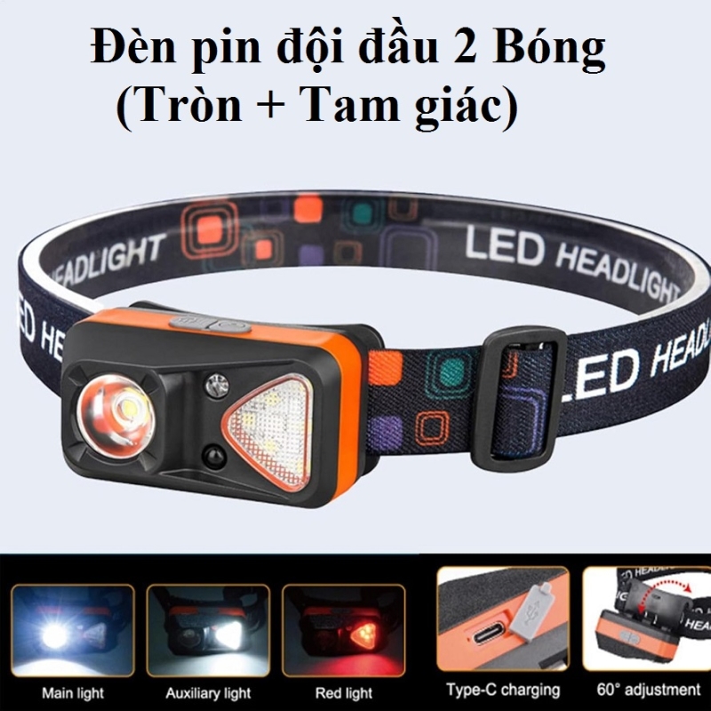 Đèn pin đội đầu 1 bóng tròn, 1 tam giác W18