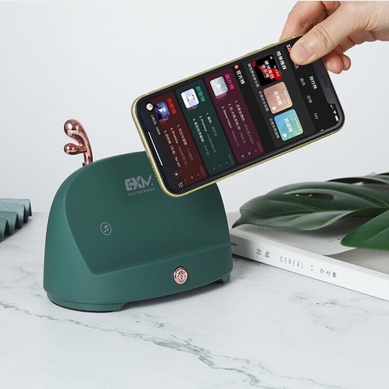 + Loa được thiết kế và sản xuất theo công nghệ hiện đại và tiện tiến nhất với khả năng vô cùng vượt trội, bạn chỉ cần đặt chiếc điện thoại hay máy tính bảng đang mở nhạc hay phim ảnh của mình lên trên giá đỡ của loa, loa sẽ tự động cộng hưởng âm thanh và phát ra âm thanh tương tự thiết bị của bạn không cần kết nối Bluetooth, kết nối dây rườm rà, phức tạp.