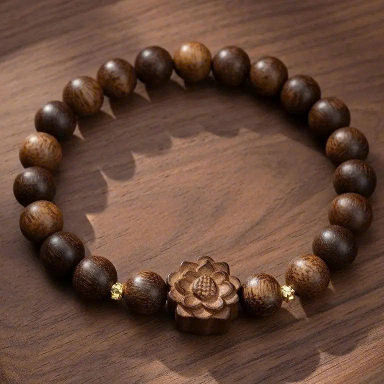 Vòng trầm đeo tay hoa sen kèm hộp gấm trend 2025